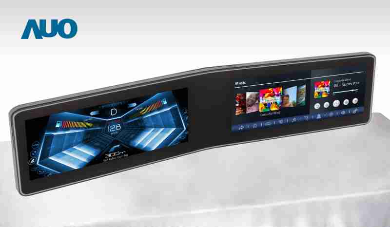 赏金国际 V 型曲面驾驶舱显示器,,采全贴合拼接仪表板及中控台显示屏 |